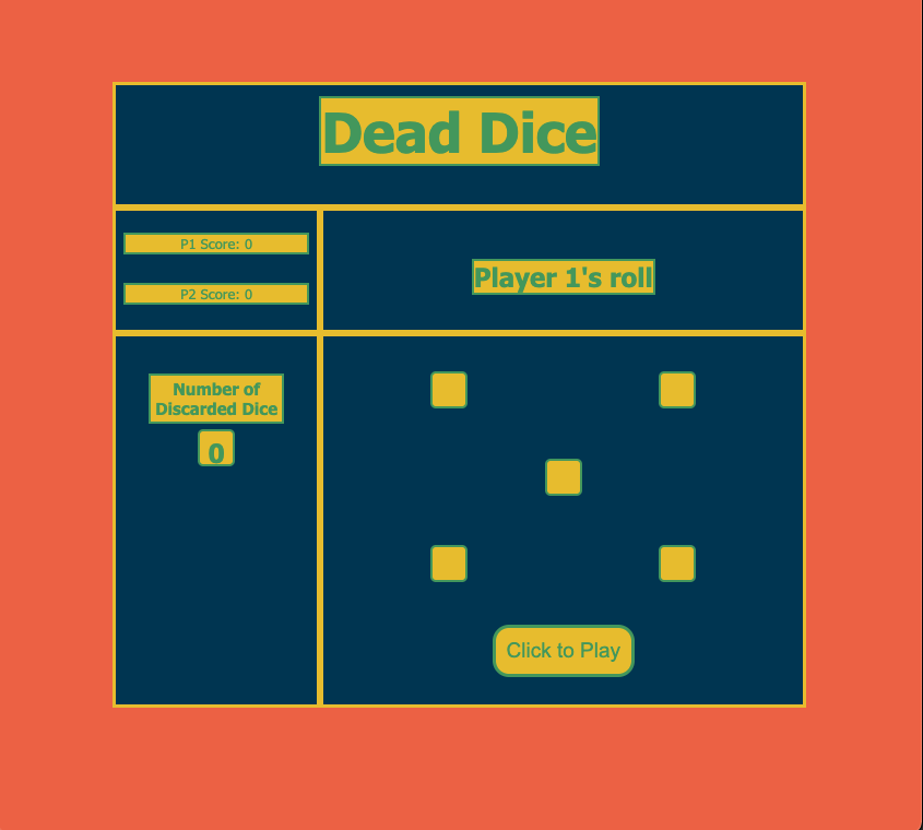 This version of Dead Dice is a simple 2 player game of chance. The object of the game is to score the most points. In order to score points, each player rolls five dice. If any of the dice land on two or five, they get discarded, and the rest of the pips on the remaining die get counted towards the players points. Ones all dice have been discarded, points are compared to determine the winner.